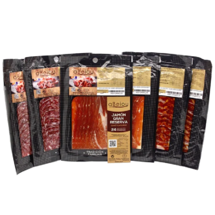 - ⭐ 600gr. LOTE SURTIDO LONCHEADOS IBERICOS BELLOTA. Pack 2 ESTUCHES de 100gr JAMON IBERICO DE BELLOTA + 2 sobres de 100gr SALCHICHÓN IBERICO DE BELLOTA + 2 sobres de 100gr CHORIZO IBERICO DE BELLOTA. Loncheados al vacío. La mejor calidad de embutidos españoles elaborados artesanalmente. Fabricado con piezas de cerdo ibérico alimentado con bellotas y embuchado en tripa natural de cerdo.