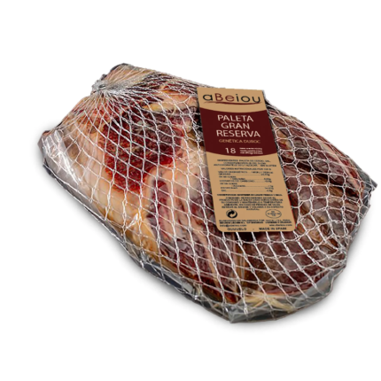 - ⭐ Paletilla de jamón blanco graso especial Gran Reserva genética raza DUROC. Pata delantera entera. Peso aproximado entre 5 y 6 kg. Pieza envasada al vacío para mantener todo el sabor y aroma original y mejorar la CONSERVACIÓN. También incluye caja de cartón.